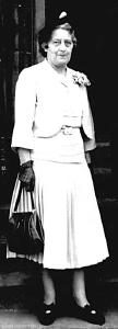 , Conway, Adele G, 12 Church Road Richmond Surrey, travelling 1st class, wife, aged 41, adult not accompanied by husband or wife, permanent residence England; boarded ship at Accra.9 - (Witness) Photograph: Adele Gertrude Aldridge is in this photograph taken in 1949 along with Alexander Miller chiropodist, Kate Nicolson shirt maker, William Ewan Conway, Audrey Malvina Conway, Marion Conway Miller obstetrician & gynaecologist and Rhoda Nicolson Miller.10