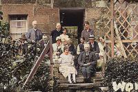 Sitting in the middle row : Robert Fisher Conway, James Conway, [?], [Samuel Lamberton Conway "Young Sam"?] [Jane Hutchison Wilkie Conway?], [Esther Agnes Ford Conway?], [James Eric Arbuckle Binnie?], [Janie Stewart Conway?], hiding behind the trellis [?]