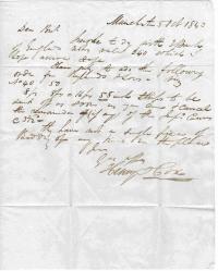 , wrote a letter to James Cox of Cox Bros and Thomas Hunter Cox of Cox Bros; Manchester 5 Oct 1843